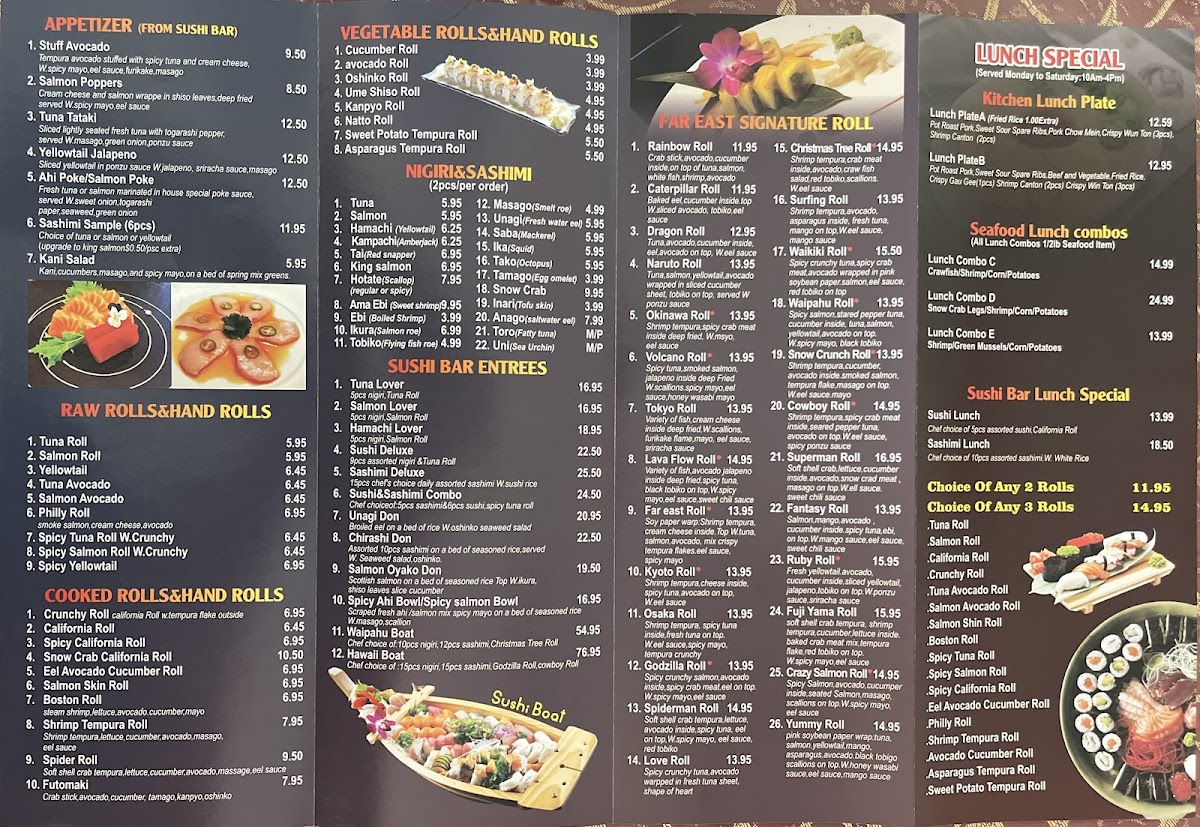 Whether you’re dining in or opting for takeout, the friendly staff ensures a memorable visit. Come discover why Far East Sushi & Seafood is a hidden gem on the island—your taste buds will thank you!